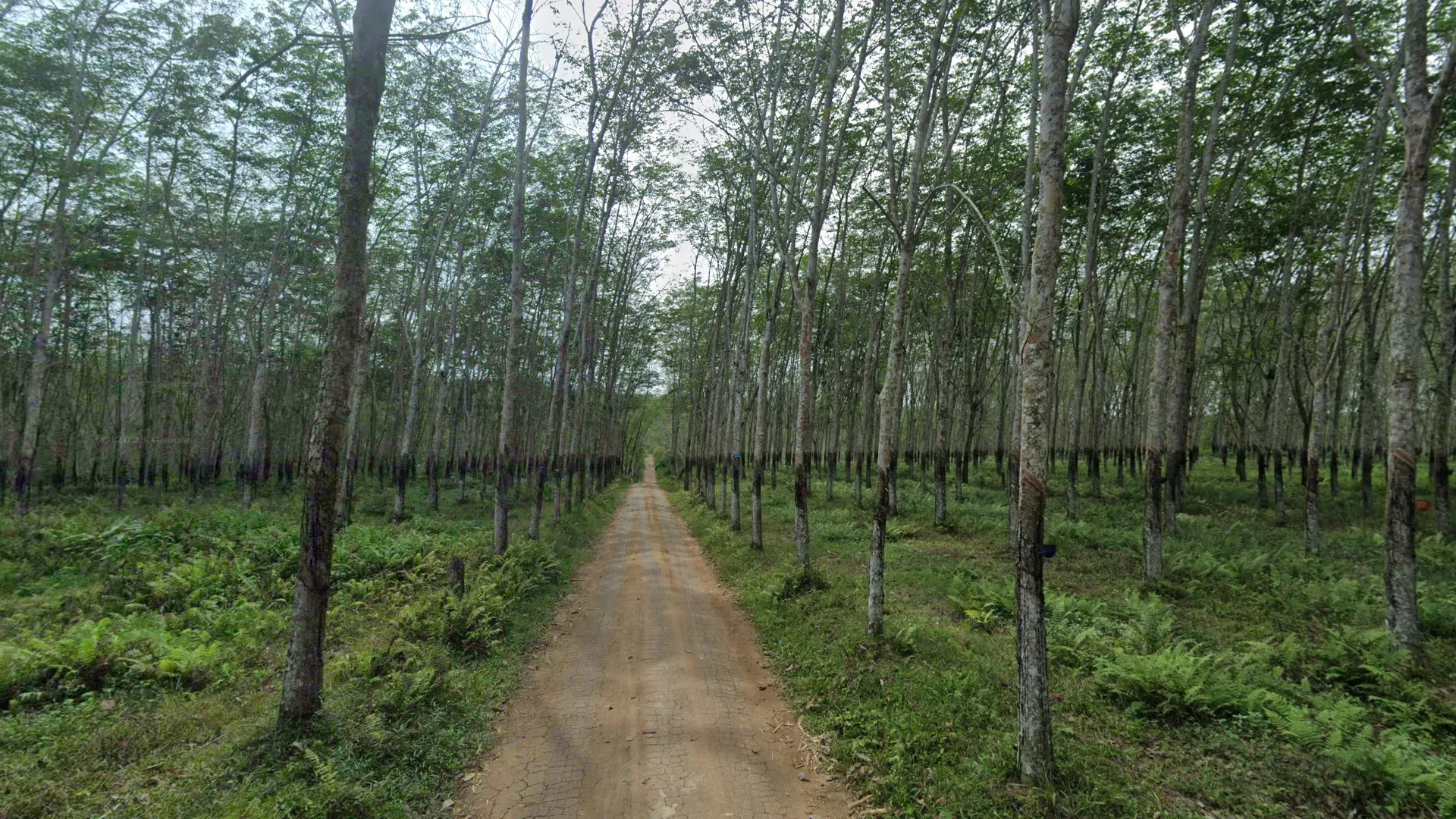 Rubber tree plantations are mainly found in southern Sumatra, North Sumatra, West Kalimantan and South Kalimantan. The trees can be recognised by their pale bark and characteristic three-part leaves.