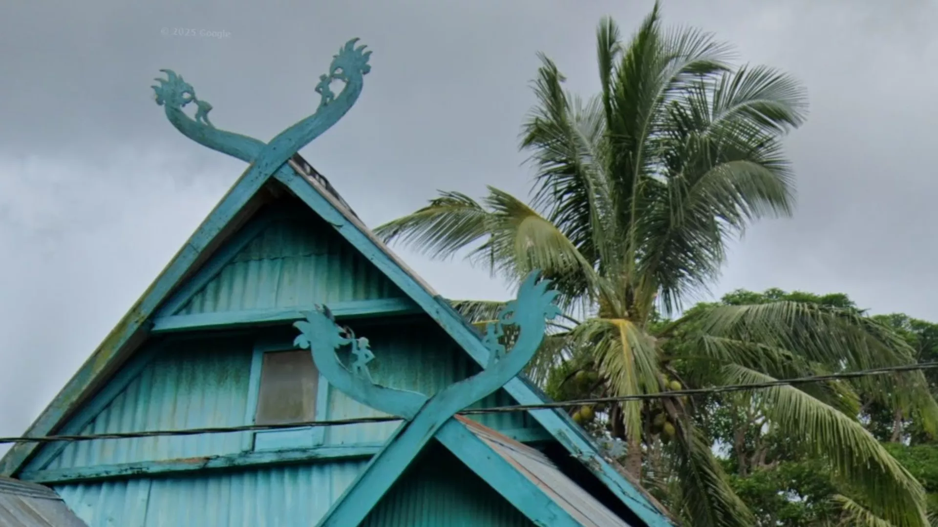 These elongated and ornate ‘rabbit ear’ gable horns are found in South Kalimantan.
