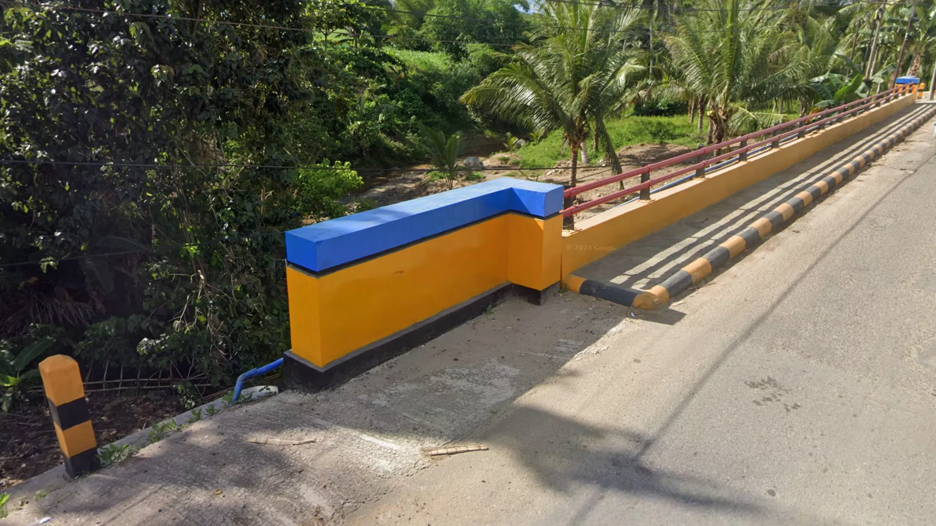 Gorontalo and North Sulawesi often use blue and yellow bridge stones too. However they are often accompanied by black and white bollards and typically have red railings, differentiating them from North Maluku bridges.