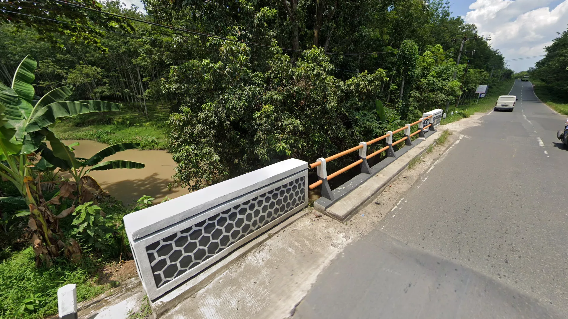 This black and white bridge stone design with a hexagonal pattern is also found in Lampung. The corresponding railings are usually yellow with black and white supports.