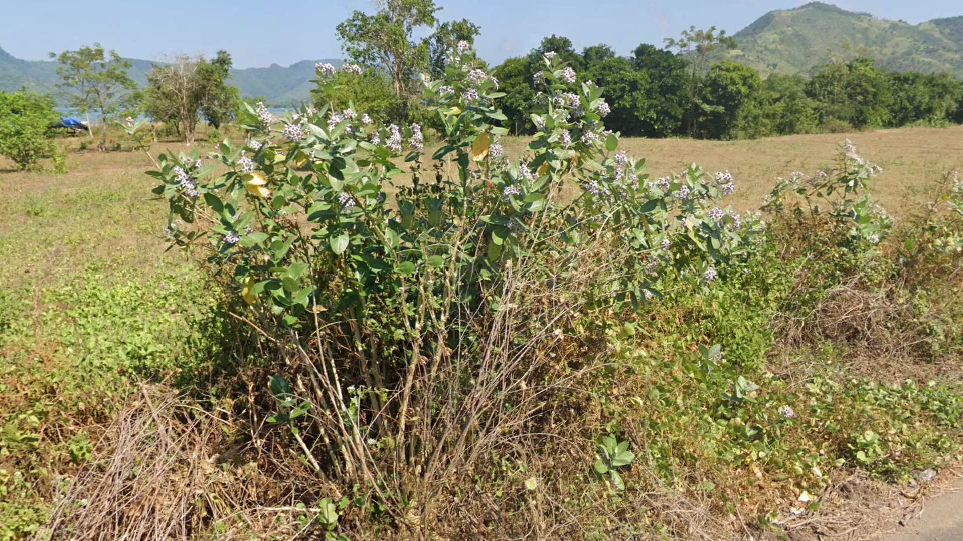 Giant milkweed (Calotropis gigantea) is a small shrub with thick round leaves and pale flowers. It can be found in dry regions of Indonesia, namely the Nusas and parts of Java and Sulawesi.