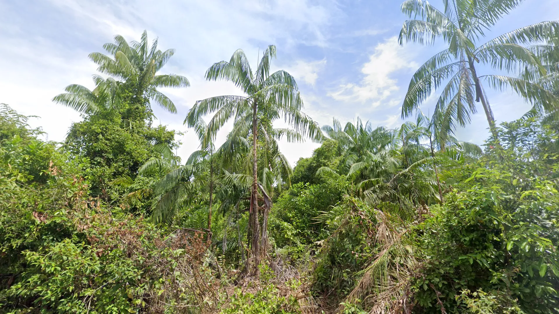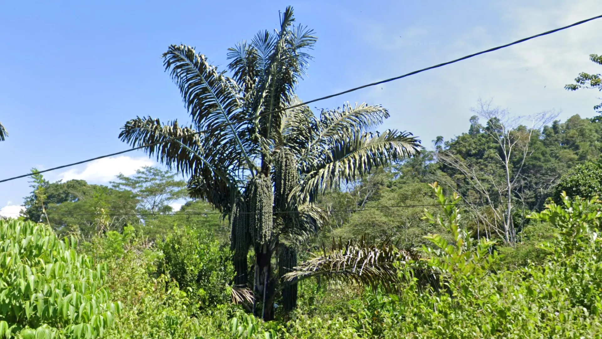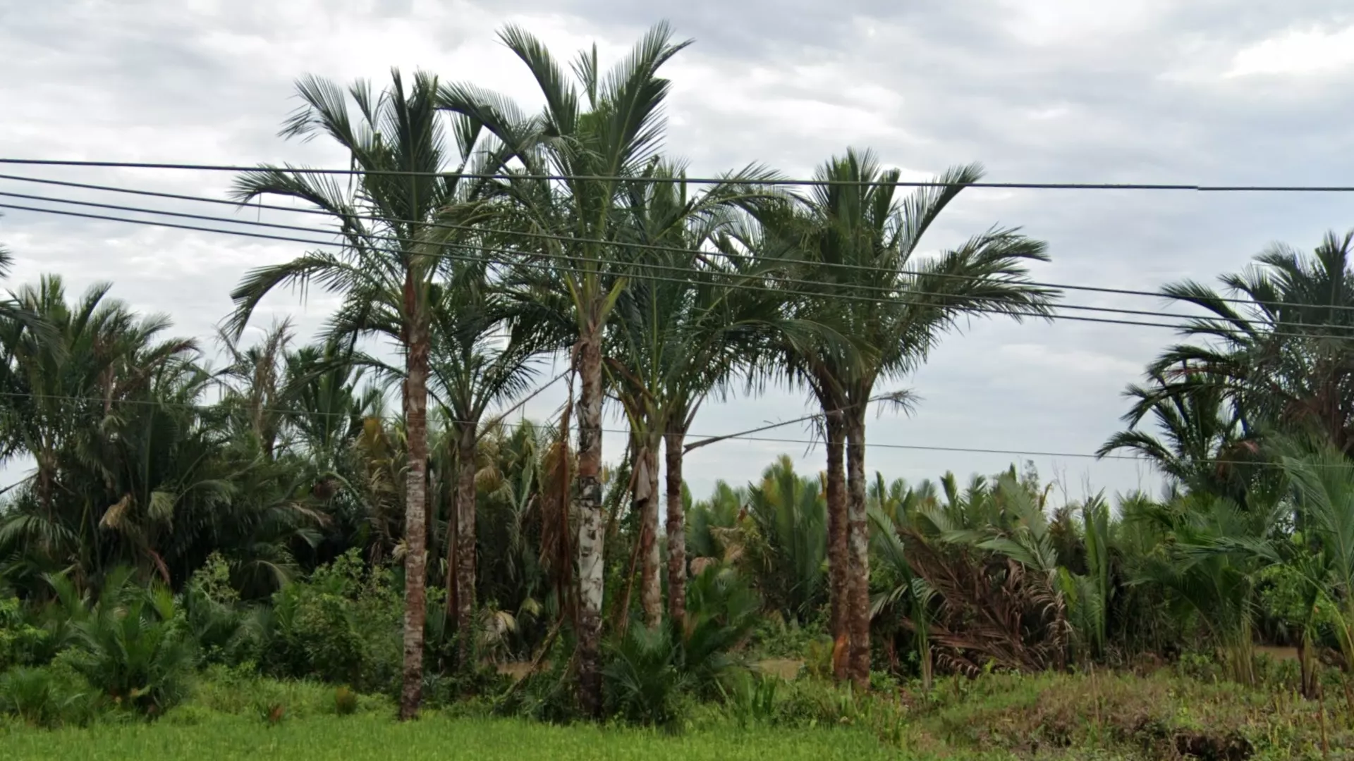 Oil palms are one of the most abundant crops in Indonesia and can be found in a few regions, but mainly in Sumatra and Kalimantan, with especially large quantities in northern Sumatra, particularly Riau. They can be recognised by having large frizzy leaves and by usually being neatly planted in rows.