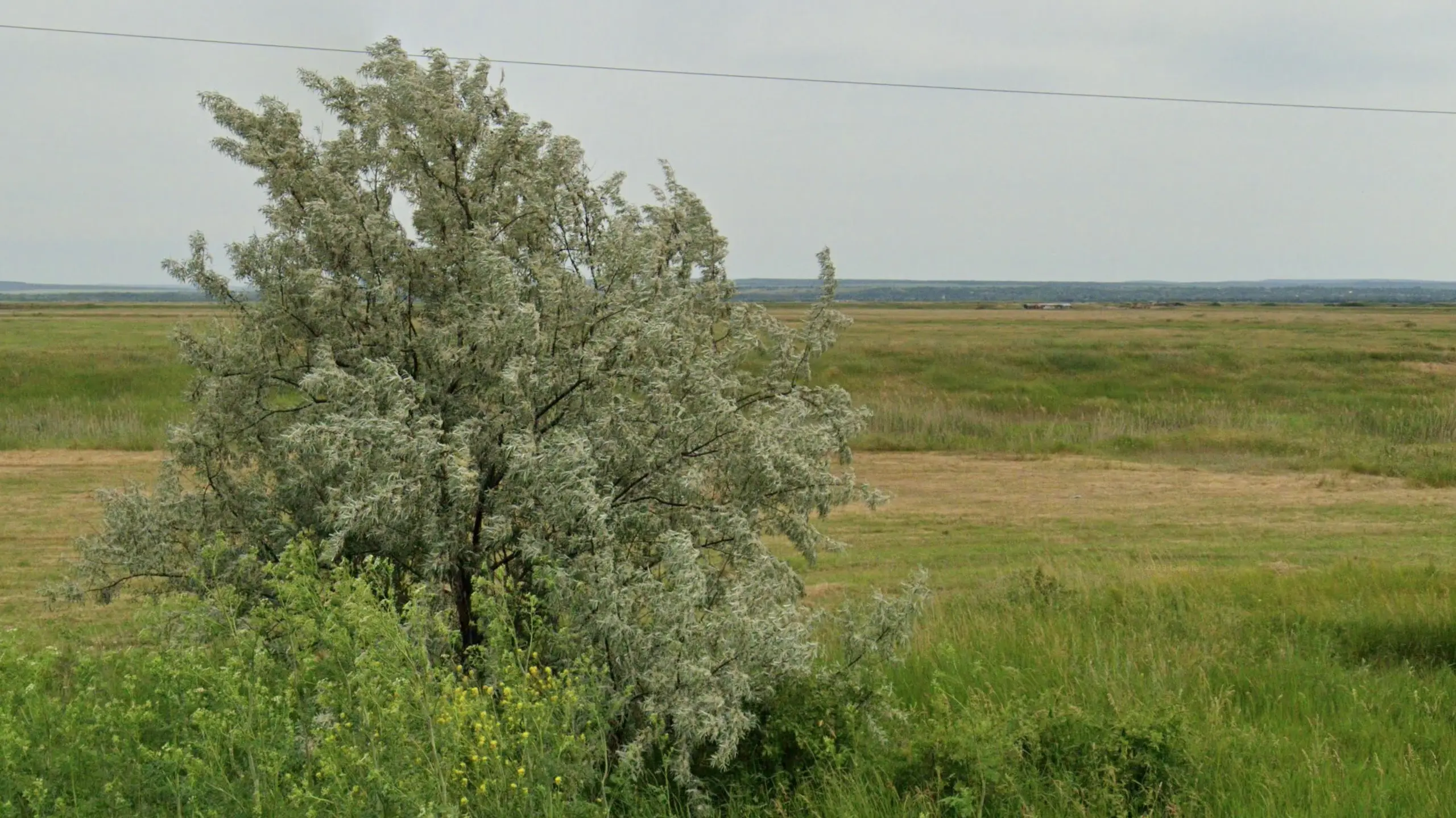 Russian olive (Elaeagnus angustifolia) is a small tree or large bush characterized by particularly white leaves. It can be seen mainly in the east of the country. Be careful not to confuse it with the more common white willow (Salix alba), Russian olive has comparatively whiter leaves and tends to be more unruly-looking.