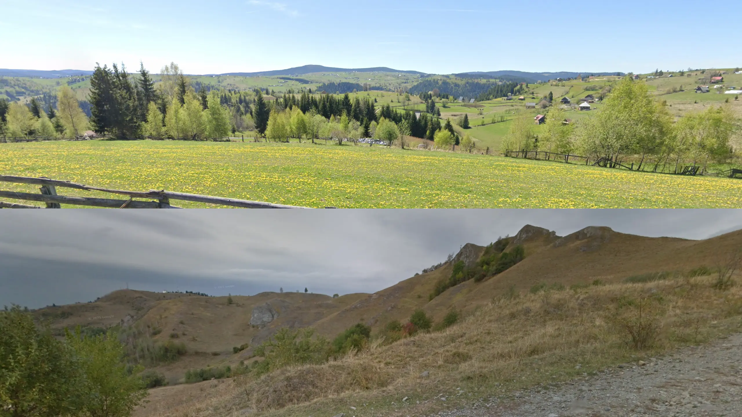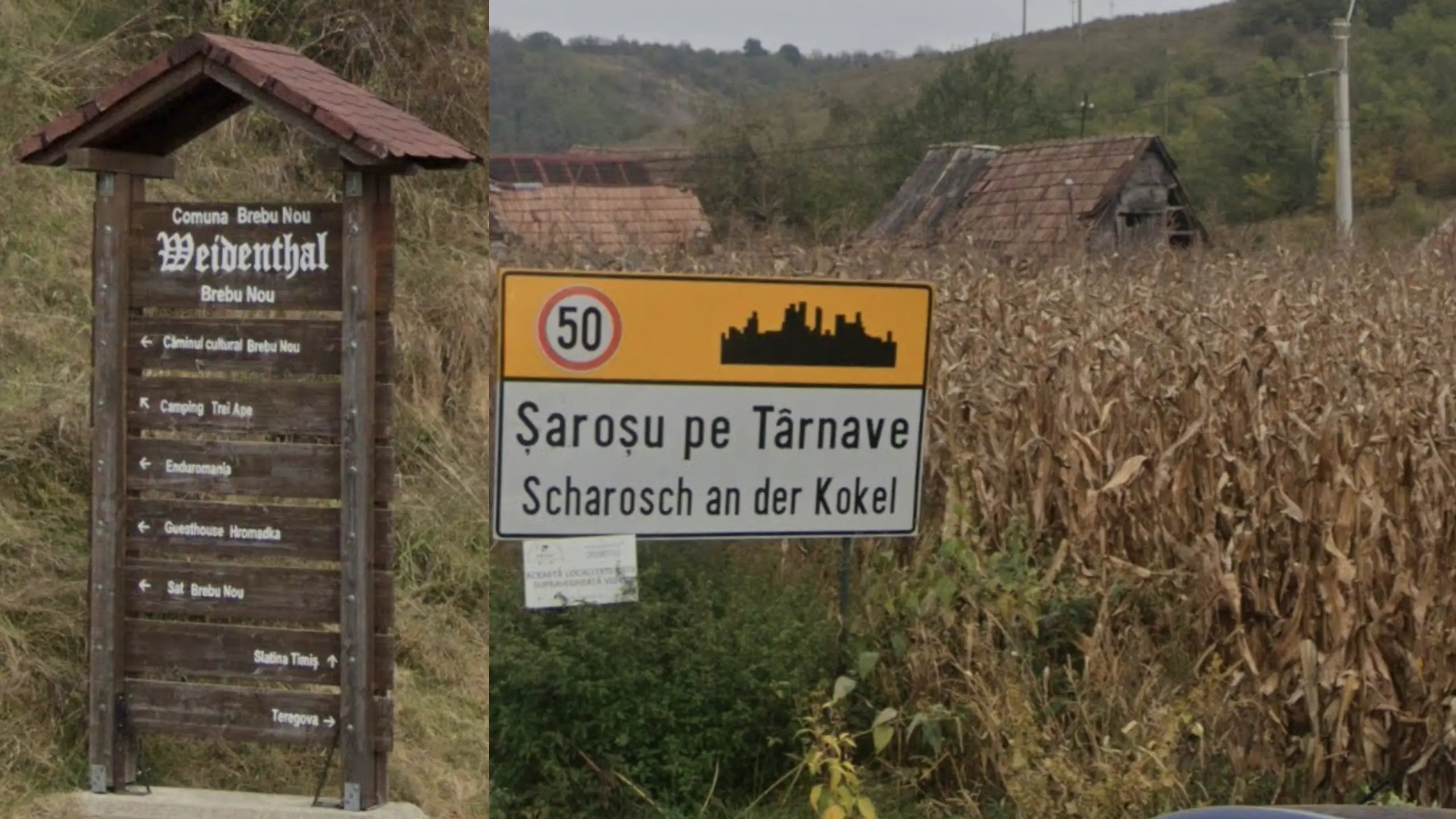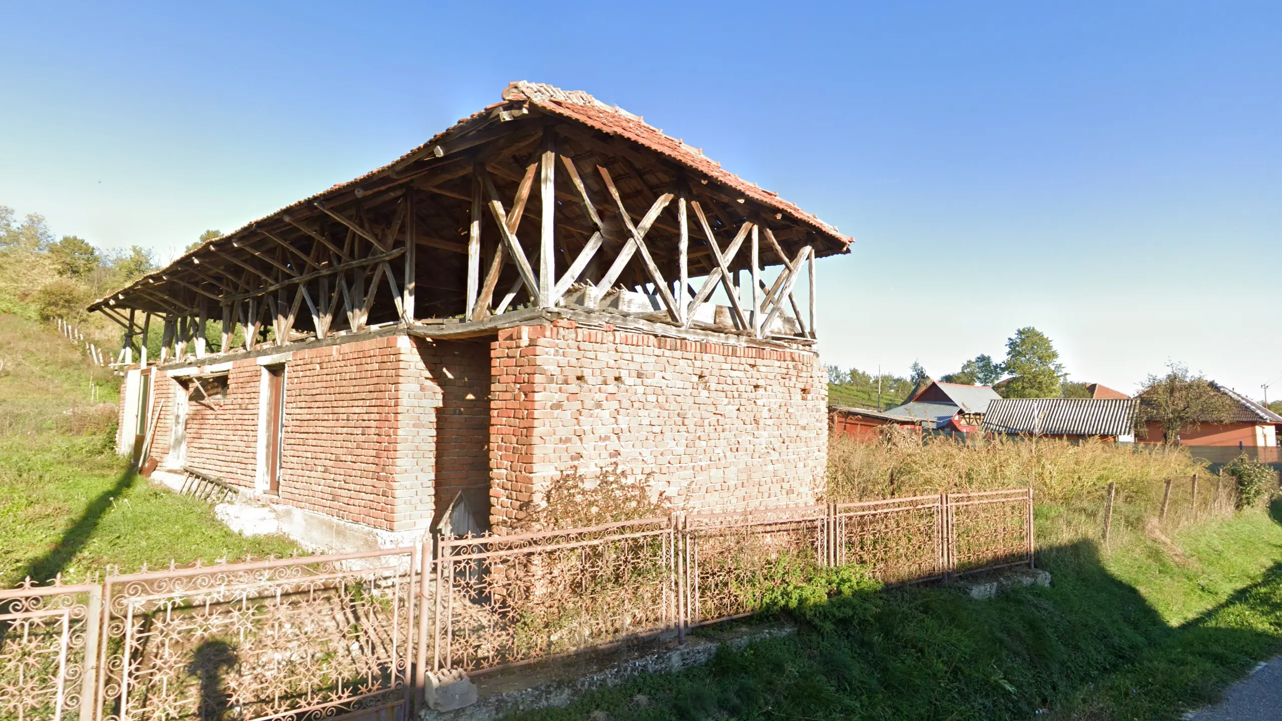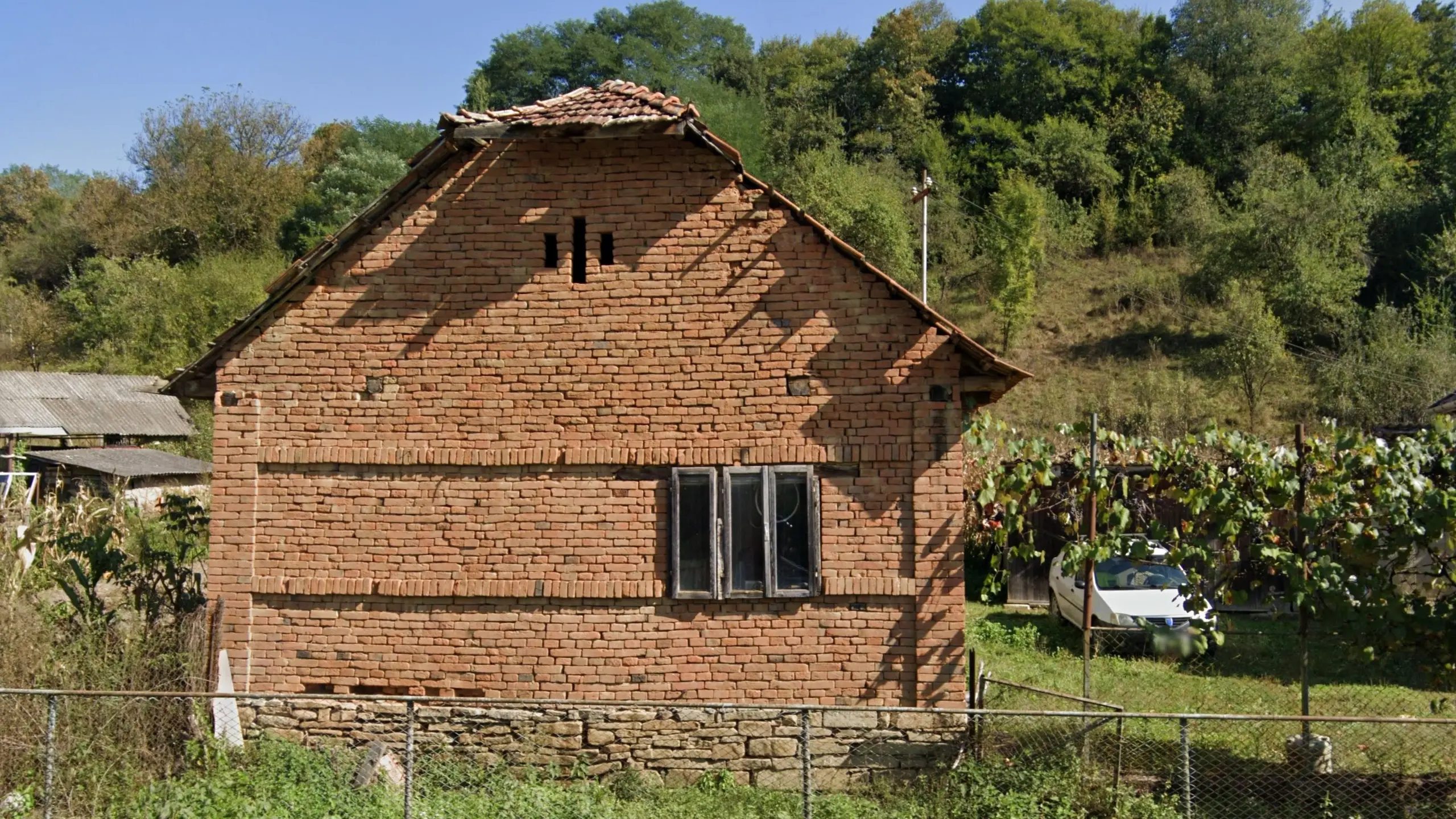 In CaraÅŸ-Severin, you will very commonly find houses connected and lined parallel to the street, giving a more closed feel. This is a very good way of identifying the county, especially in combination with wooded hills surroundings.