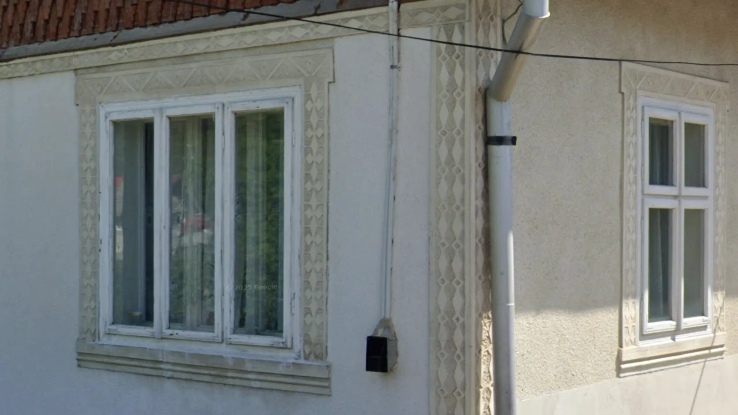 Bucovina is a historical region that roughly corresponds to Suceava county. This specific style of decoration along the borders of walls and windows is a feature of Bucovina architecture.