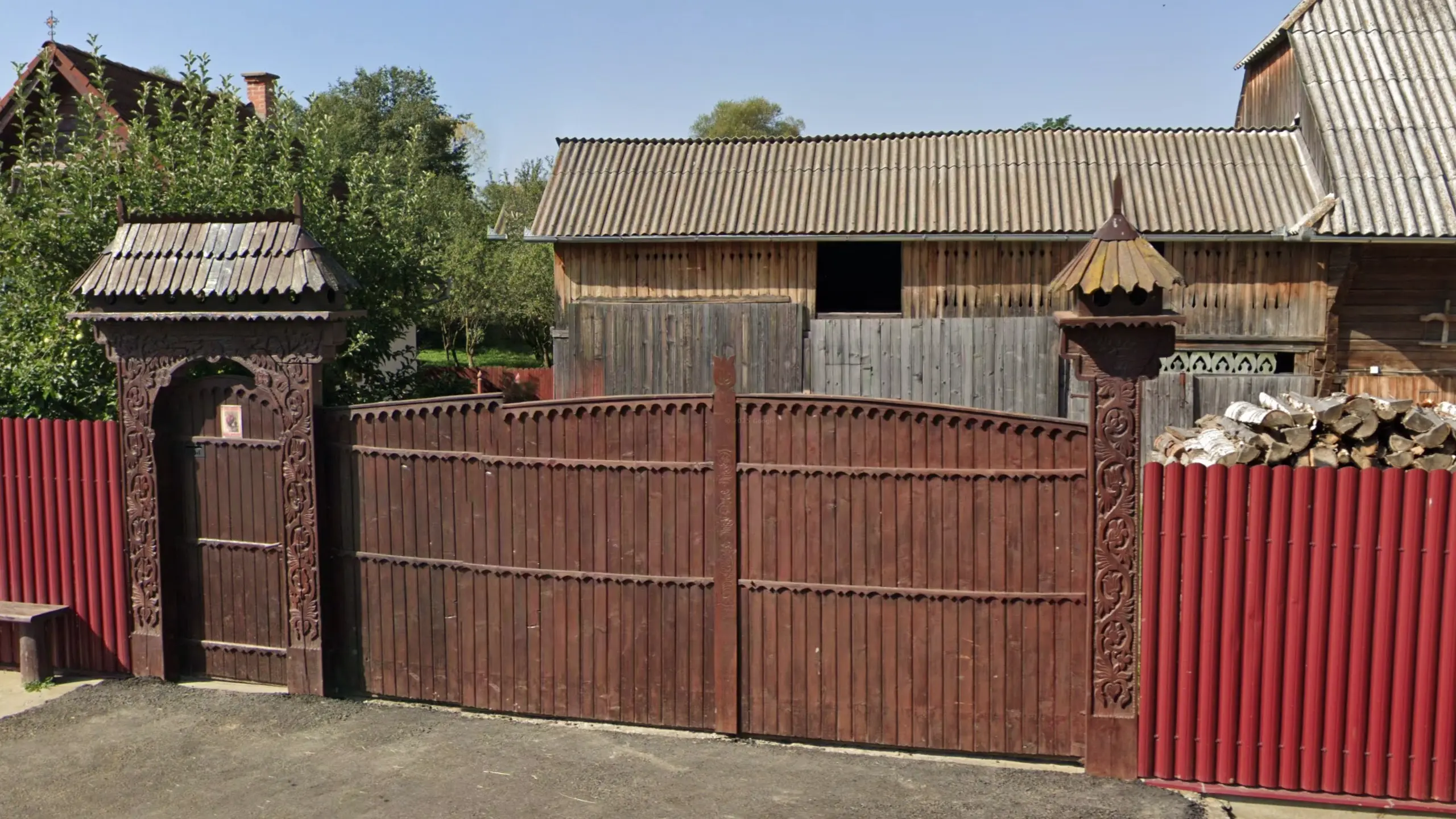Neamț and Bucău counties have more simple versions of Suceava gates, usually missing the crossbeam underneath or the ornamentation, but still with decorated metal roofs. In Bucău especially you can find the curved variant of these roofs.