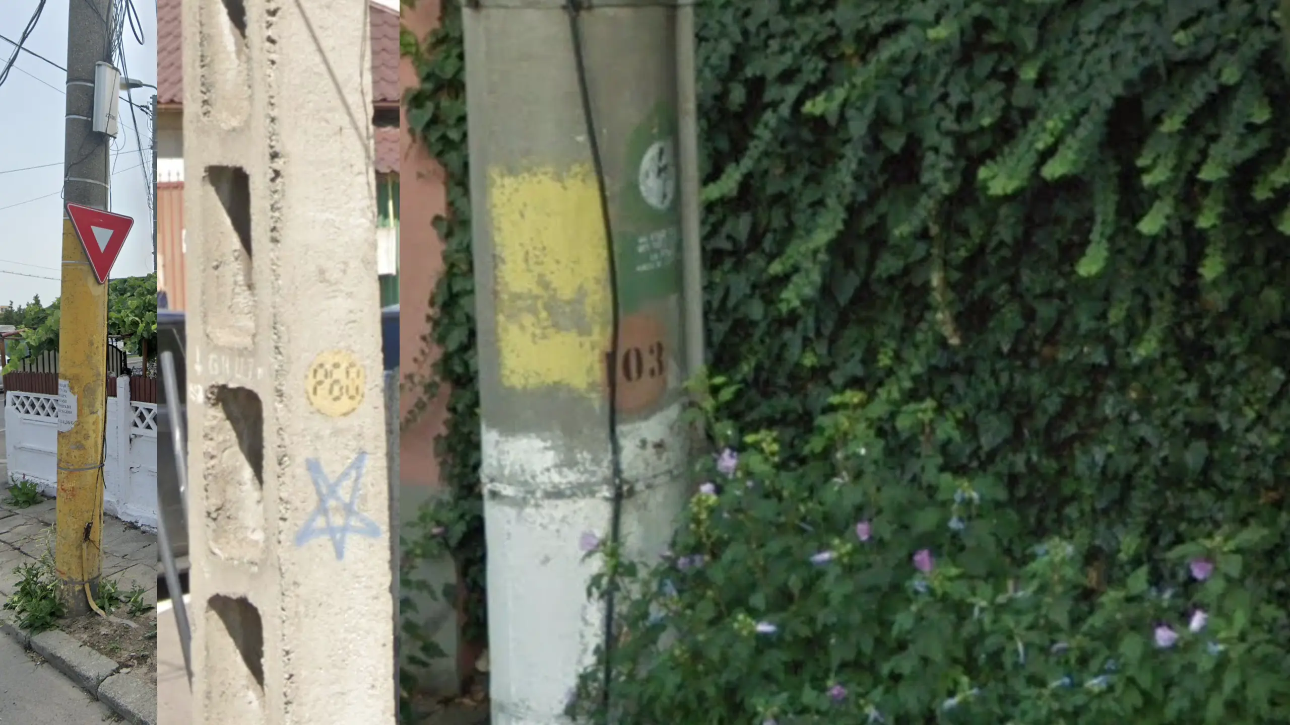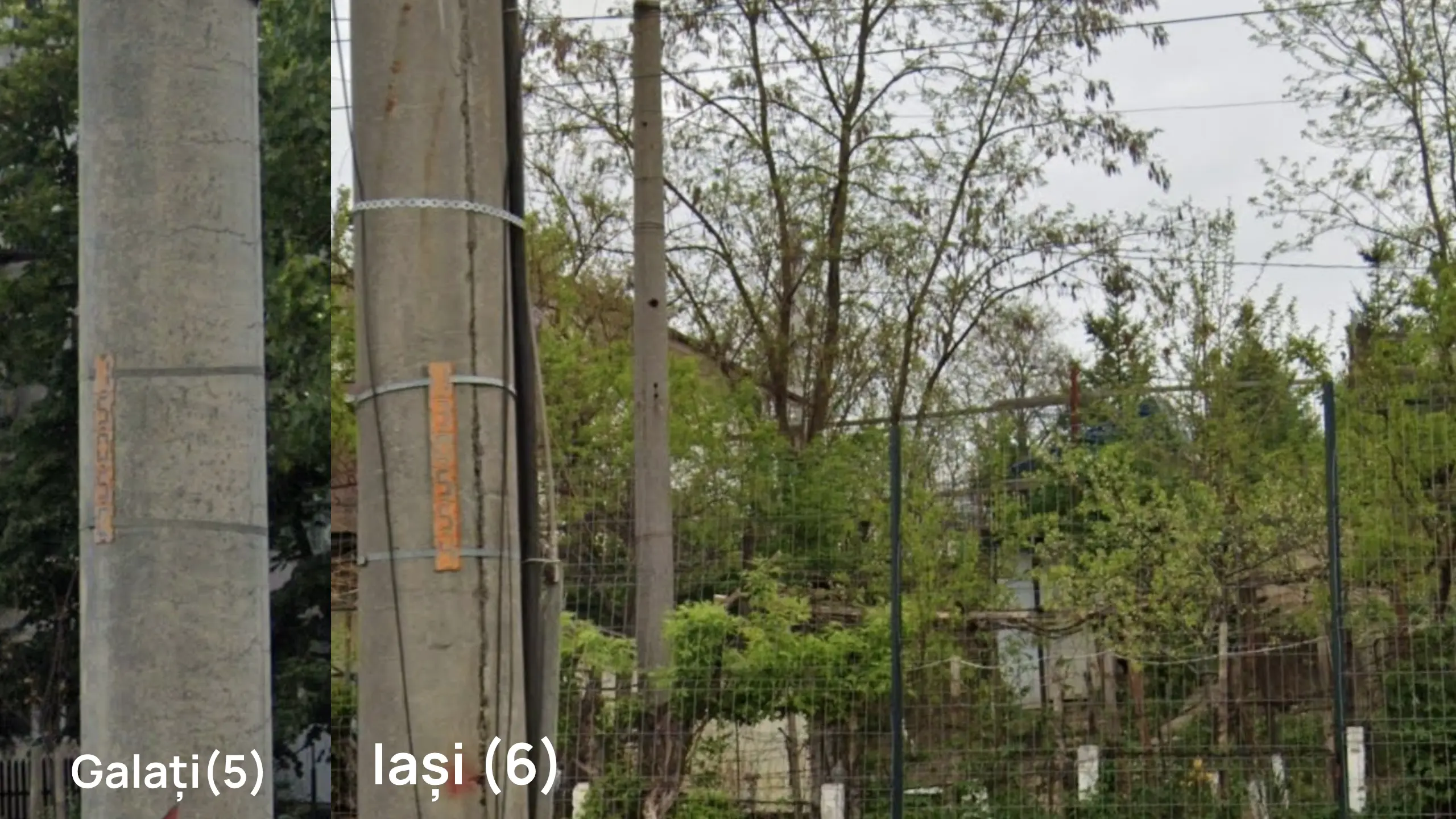Constanța city has quite unique pole infrastructure. Poles with extra-long yellow paint, unique green warning stickers, and 3-number circular pole tags (either in old font or ‘calculator’ font) are all metas for Constanța.
