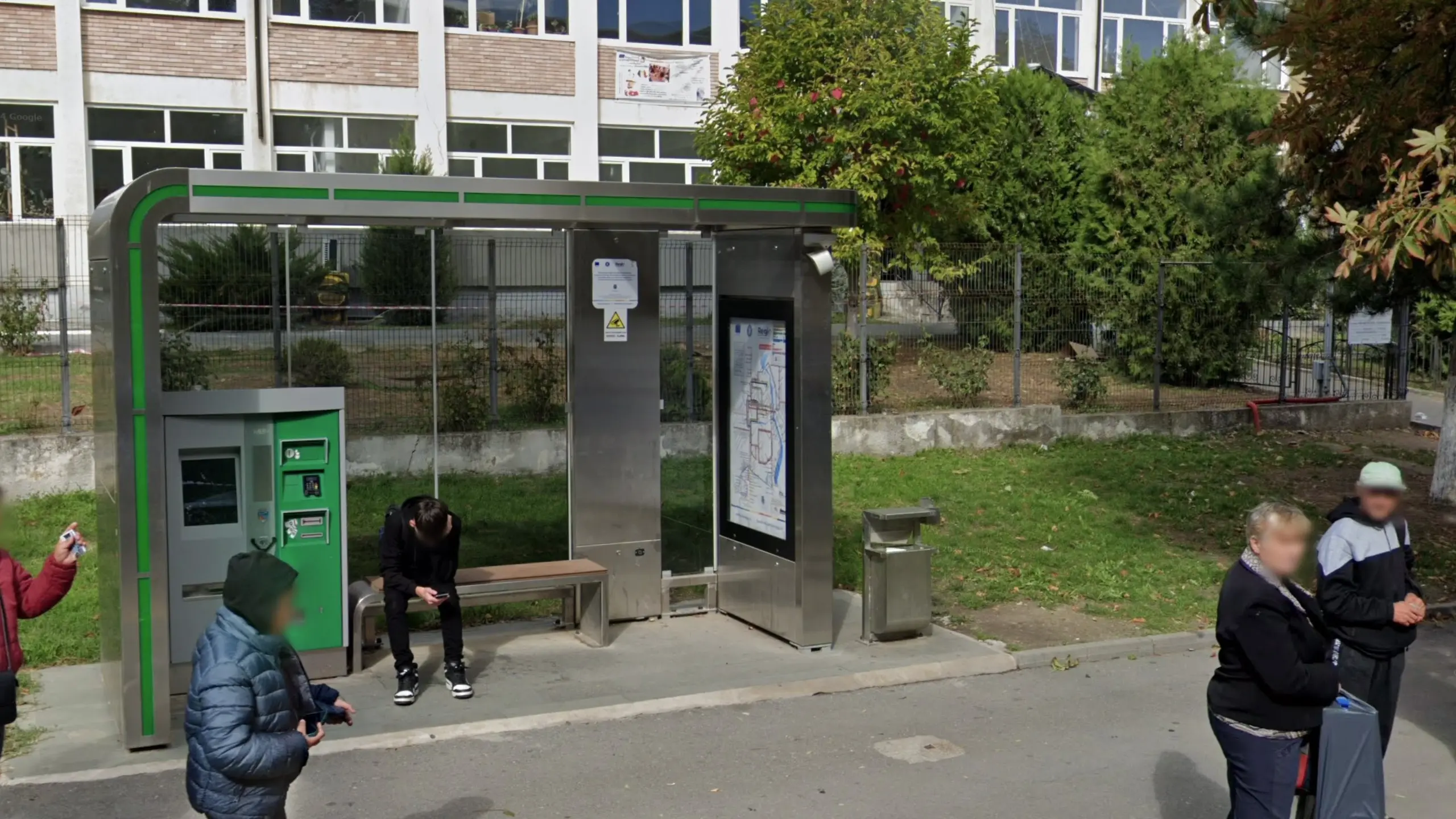 Râmnicu Vâlcea has these unique bus stops with green lines. Busses are also green here although that is not unique to this city.