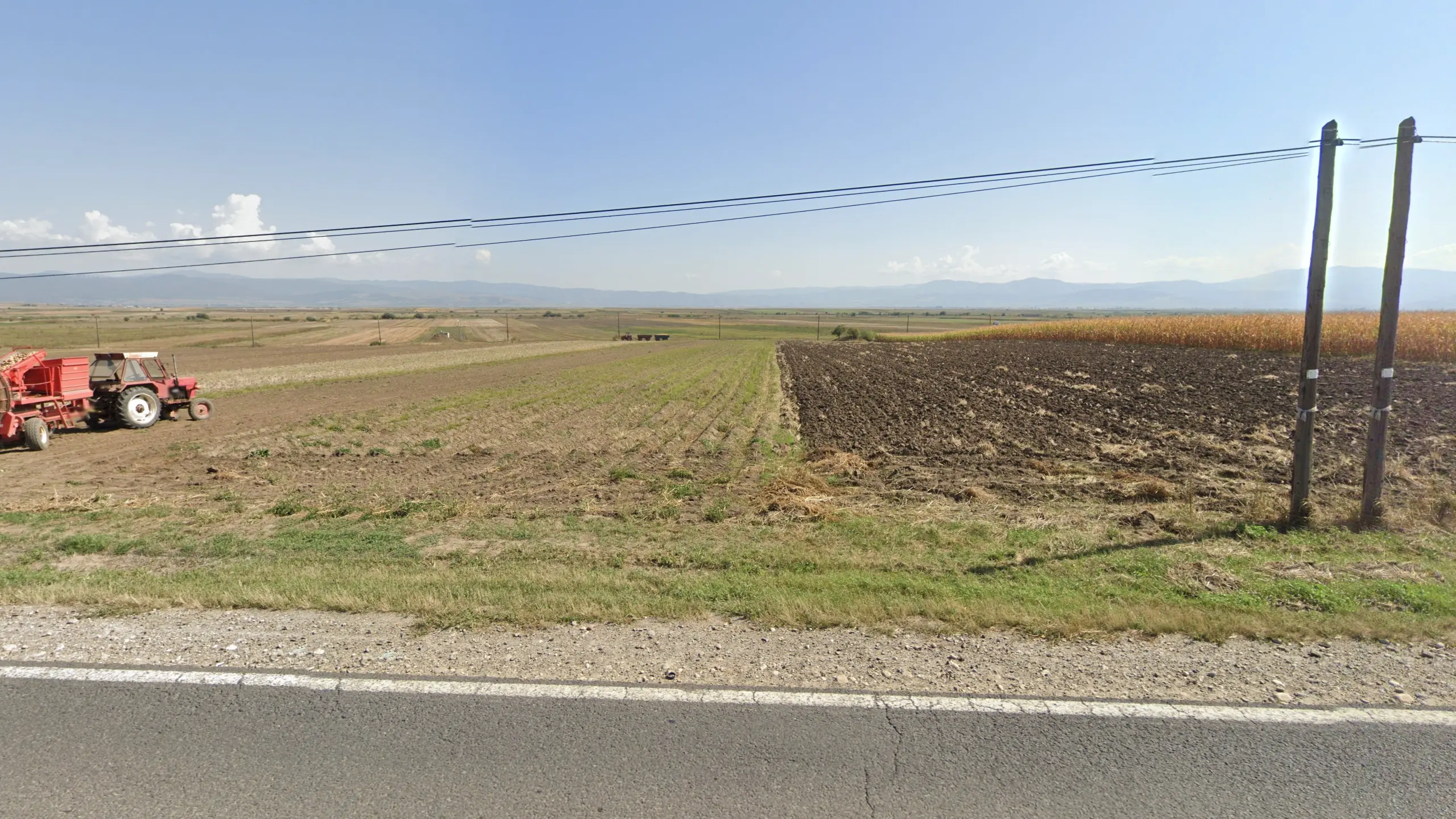 The Făgăraș plain is an extremely easy to identify landscape. It is the only dead-flat part of Central Romania, and has a wall of tall mountains to its south.